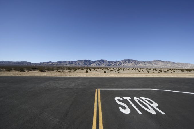 Desert road stop sign, California