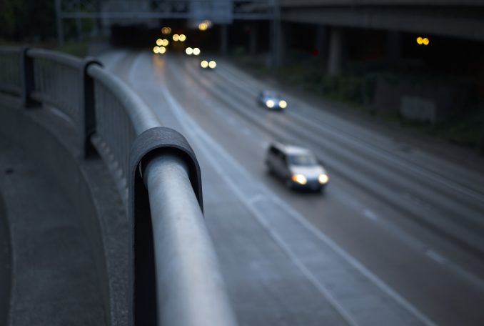 Elevated View Of City Centre Roads At Evening Rush Hour ll