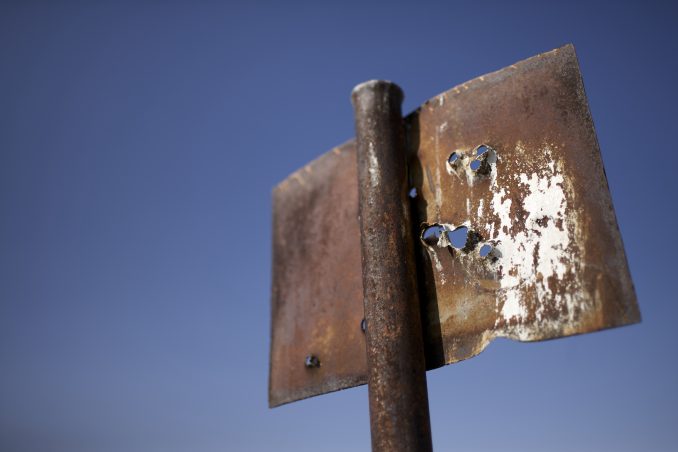 Shot out sign, California