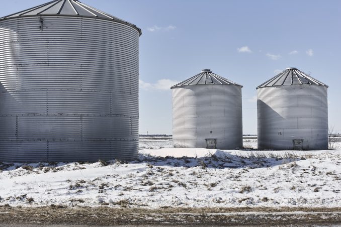Wintertime grain silos, Midwest