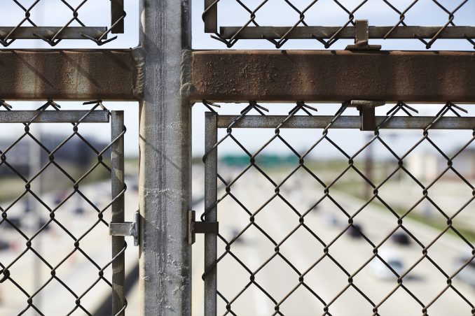 Illinois, chain link fence over freeway