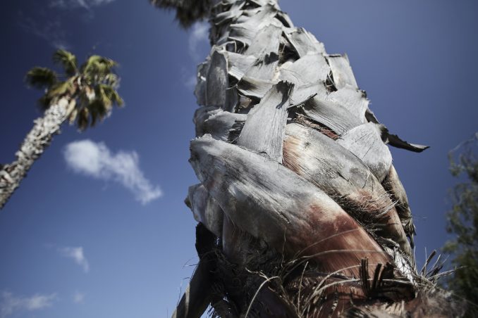 California, palm trees in blue sky