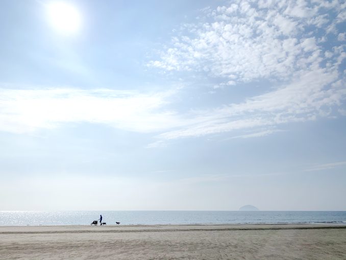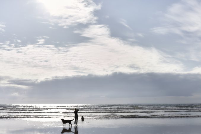 Lady and her dog on a Scottish beach